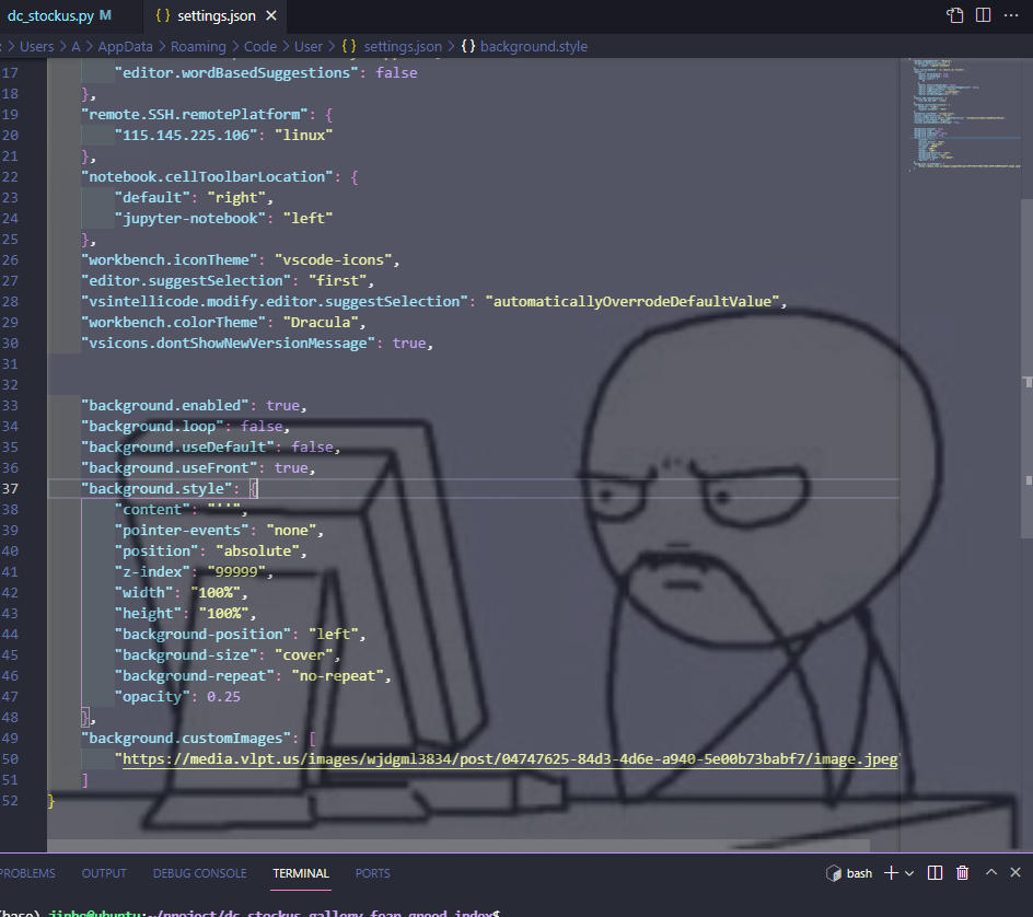 오늘은 vscode에 배경 이미지를 추가해보자.