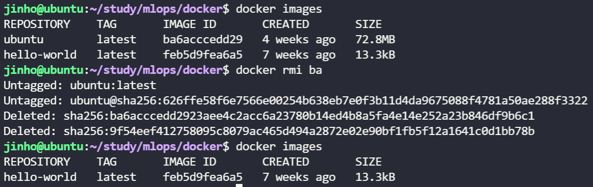 ubuntu 이미지가 삭제된 것을 확인할 수 있습니다.