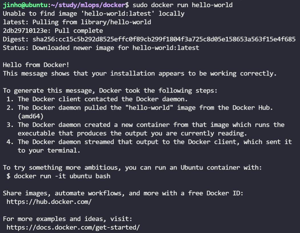 sudo docker run hello-world