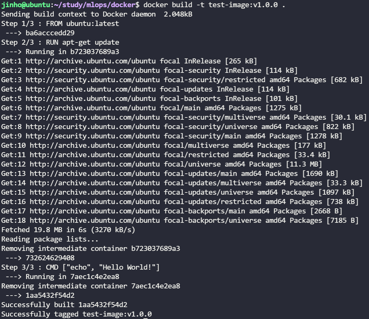 설명하자면 이름이 my-image고 태그가 v1.0.0인 이미지를 현재 경로에 있는 Dockerfile로부터