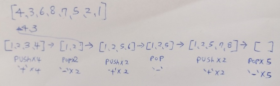 while len(stack) > 0 and index < n and stack[-1] == li[index]: