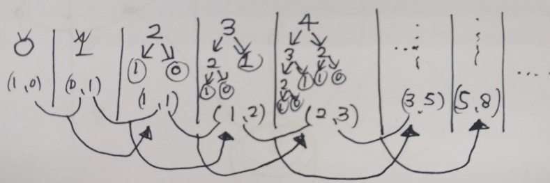 EX) 입력이 3일 때, 1의 결과 (0, 1)과 2의 결과 (1, 1)을 더한 (1, 2)가 답이다.