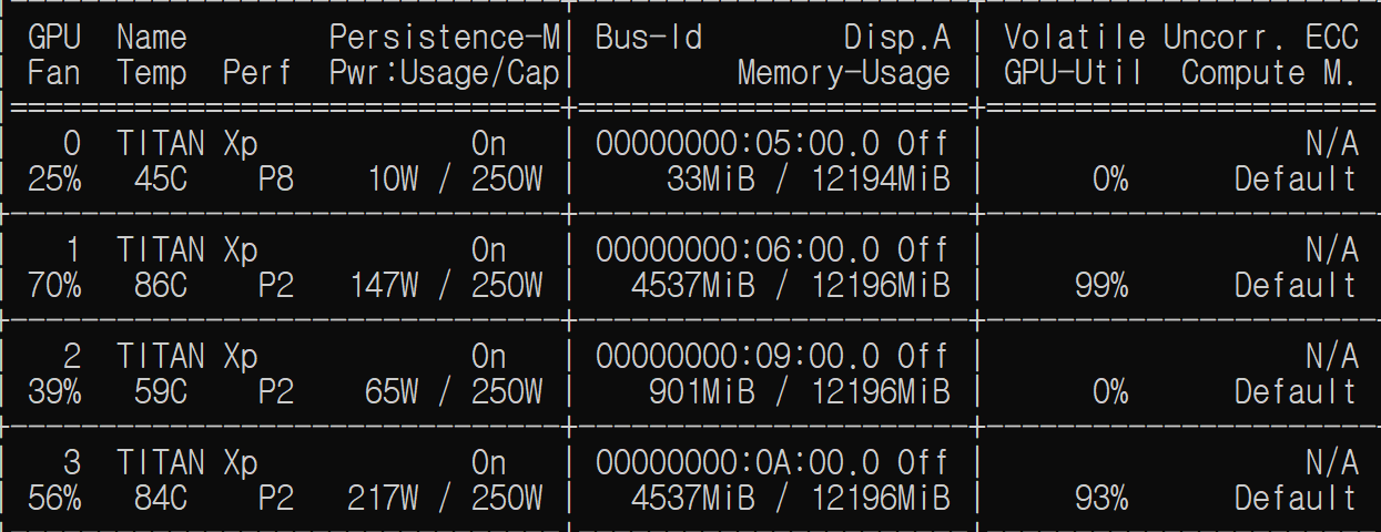 1, 3번 GPU는 다른 사용자가 사용하는 것이고, 2번 GPU를 성공적으로 사용하고 있는 것을 확인할 수 있다.