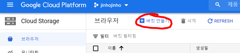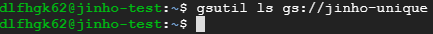 gsutil ls gs://jinho-unique -> jinho-unique 버킷에 뭐가 들어있는지 확인하는 명령어다.