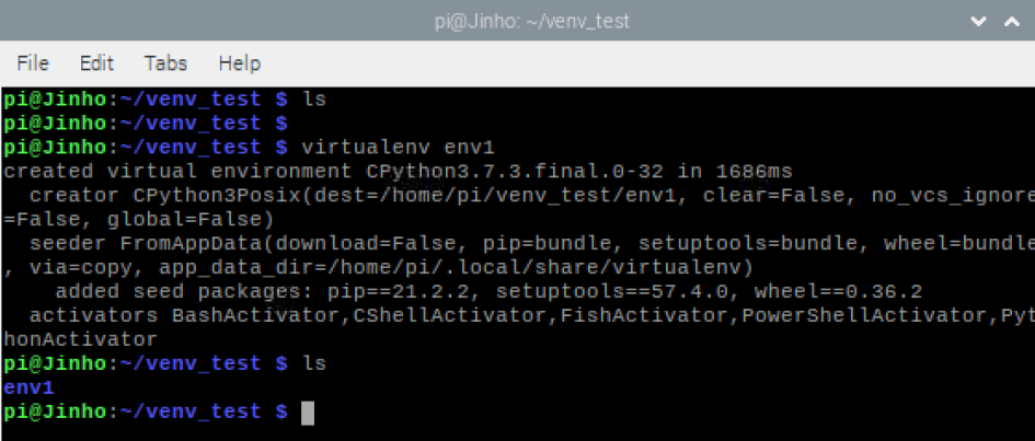 아래 명령어를 실행하면 env1이라는 이름의 가상환경이 생성된다.